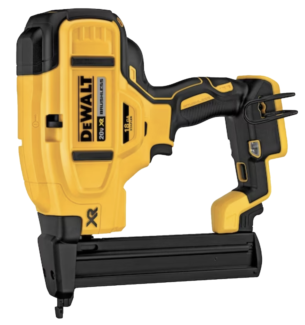 The DEWALT DCN681 18 Gauge Narrow Crown Stapler drives 18 Gauge 1/4 in narrow crown staples from 1/2 in to 1-1/2 in which makes it ideal for cabinetry, furniture, paneling, and flooring underlayment. With its brushless motor powered by a DEWALT 20V MAX* Lithium-Ion battery the DCN681 is ready to work without the hassle of using gas, compressor, and hose. Tackle jobs both large and small with the features of a pneumatic tool and the freedom of cordless. * Maximum initial battery voltage (measured without a workload) is 20 volts. Nominal voltage is 18.