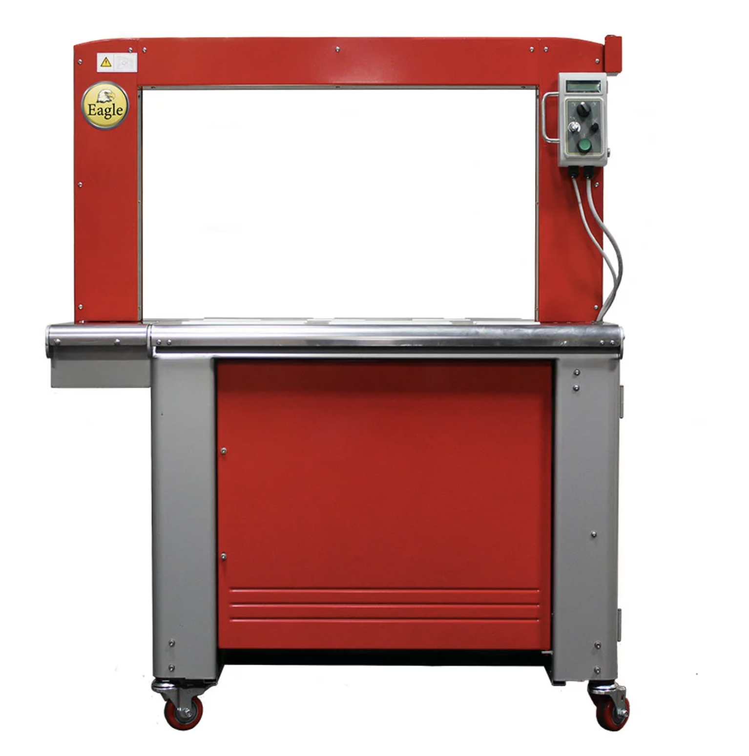 Eagle 710L similarly designed to the Eagle 710 but straps larger cartons. This innovative high-speed automatic strapping machine is compatible with a 5mm, 6mm, 9mm or 12mm polypropylene strap. This machine also comes equipped with industry standard features and creative user-friendly designs. The latest DC brushless motor technology provides the highest level of accuracy and reliability on the market. These motors are German-made. In addition optimal performance, high-speed, and easy maintenance makes it easy to use. In conclusion this is a cost-effective solution for your package strapping needs.