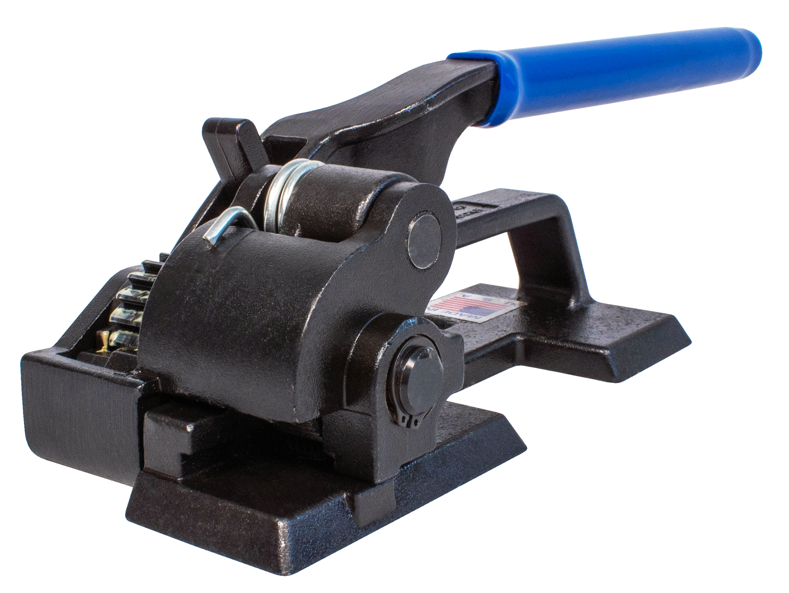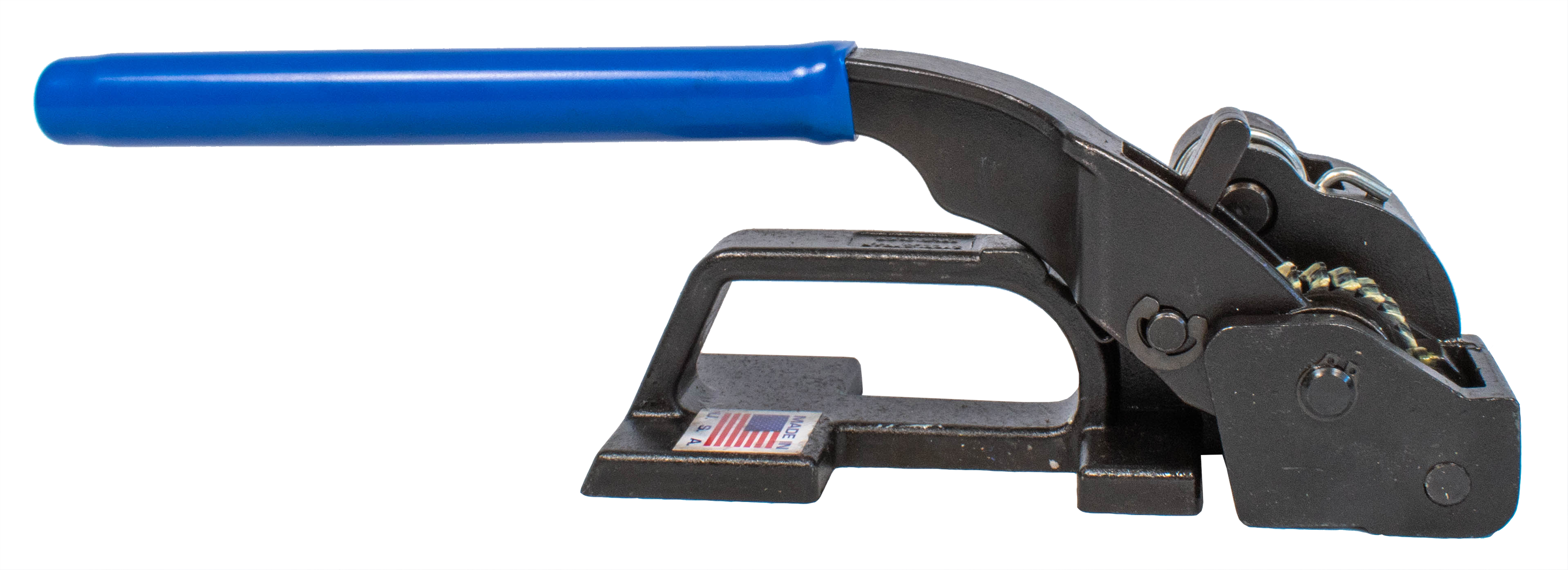 This compact and light duty steel tensioner features an elegant and durable design and provides superior tensioning capabilities for smaller loads. Soft-touch handle for comfortable grip with unlimited take-up of strapping. For flat packaging. Made in the USA.