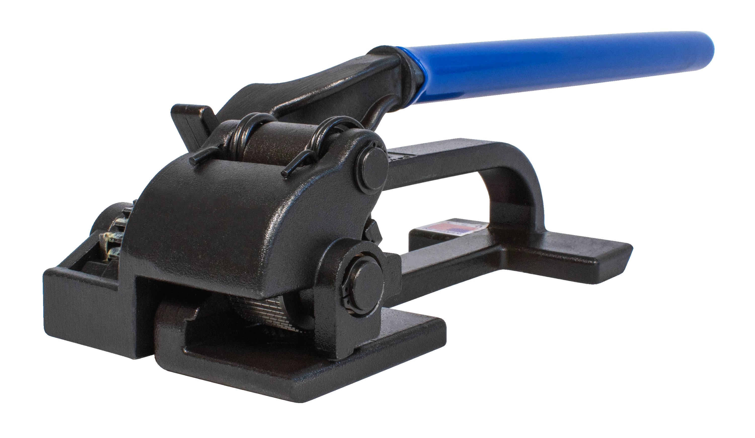 Large steel tensioner features a durable design and provides superior tensioning capabilities for larger sizes of steel strapping.