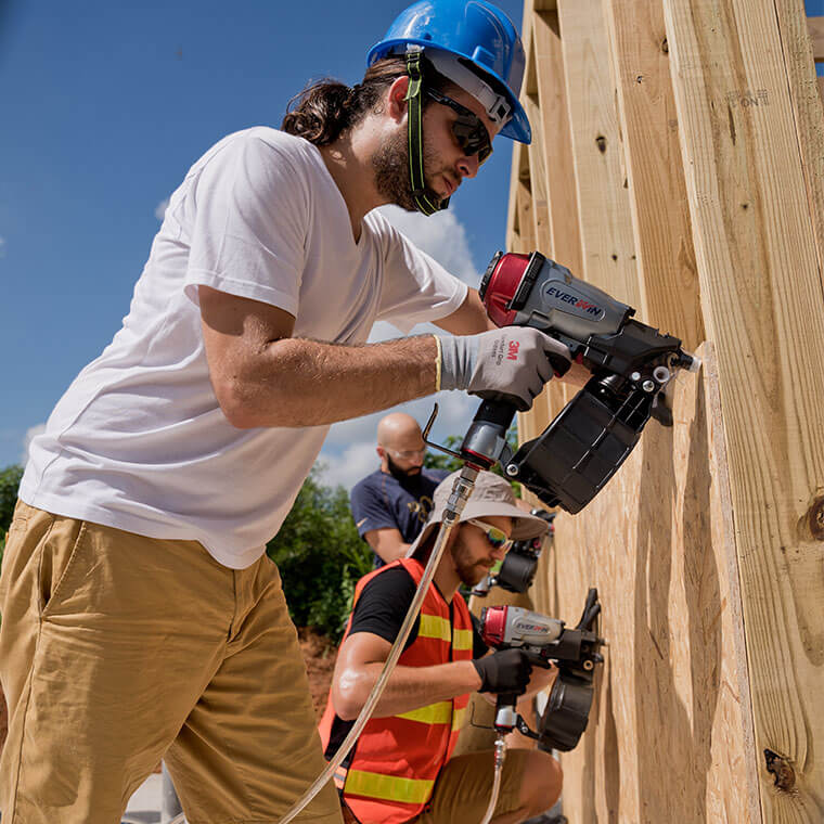 The SCN65C-ST, driving up to a 2 1/2″ nail is perfect for a wide range of siding applications. This tool drives smooth, ring, and screw shank coil nails in both wire and plastic sheet collation. Applications include: Subflooring, Siding, Fencing, Sheathing, Manufactured Housing