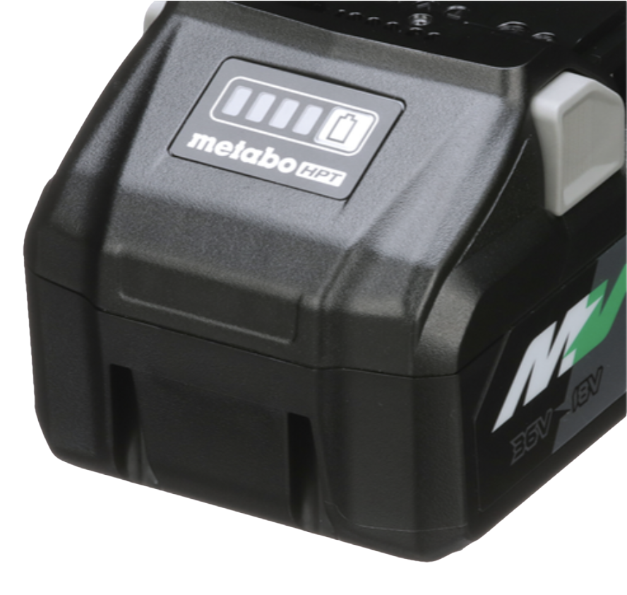 The Metabo HPT MultiVolt Battery delivers 4.0Ah of runtime in 36V power tools and also can power Hitachi or Metabo HPT 18V slide type tools.
