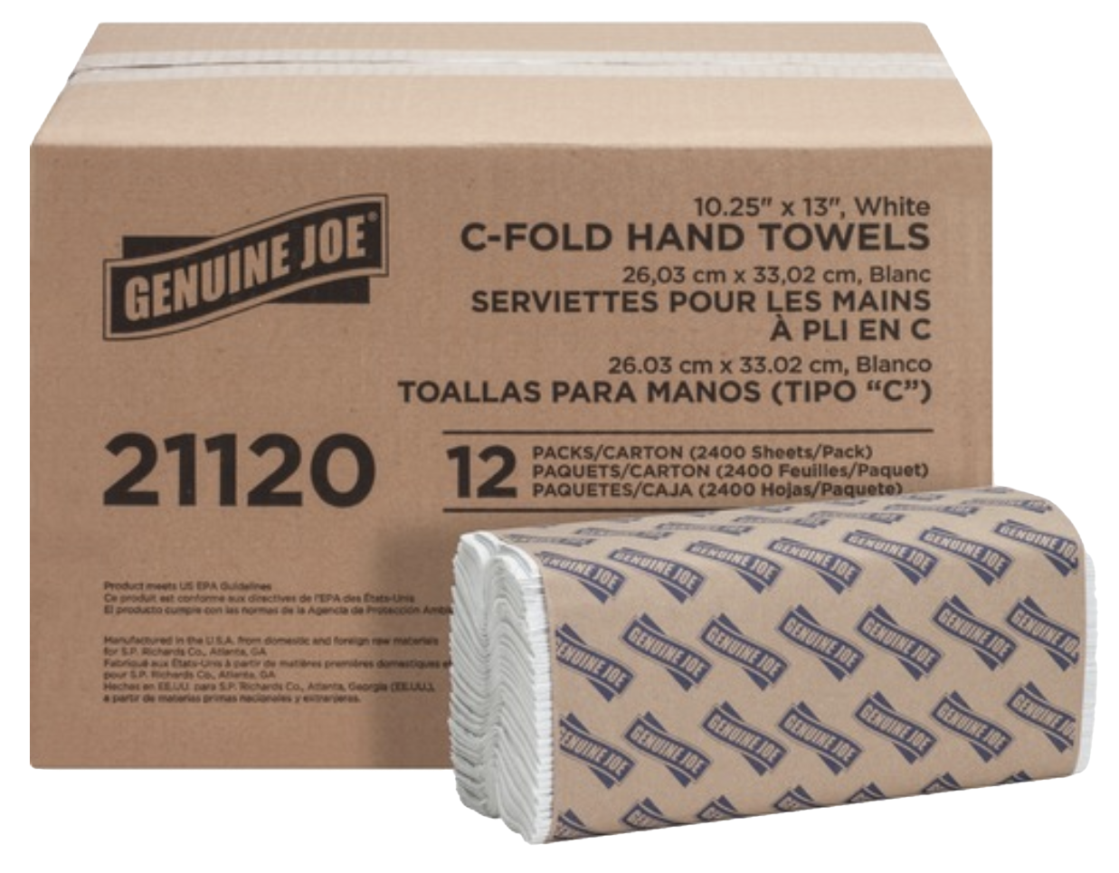 C-Fold towels offer a larger towel size and one-ply construction that increase the absorbency of each sheet. Deeply embossed design offers thickness and a more preferable feel. Folded towels encourage faster washroom traffic and cleaner restrooms. Hands-free dispensing is more sanitary and prevents cross-contamination. Ideal for public environments. Towels are made from a high percentage of recycled fiber with post-consumer material that easily exceeds EPA guidelines. Certifications & Standards: Green Seal Certified