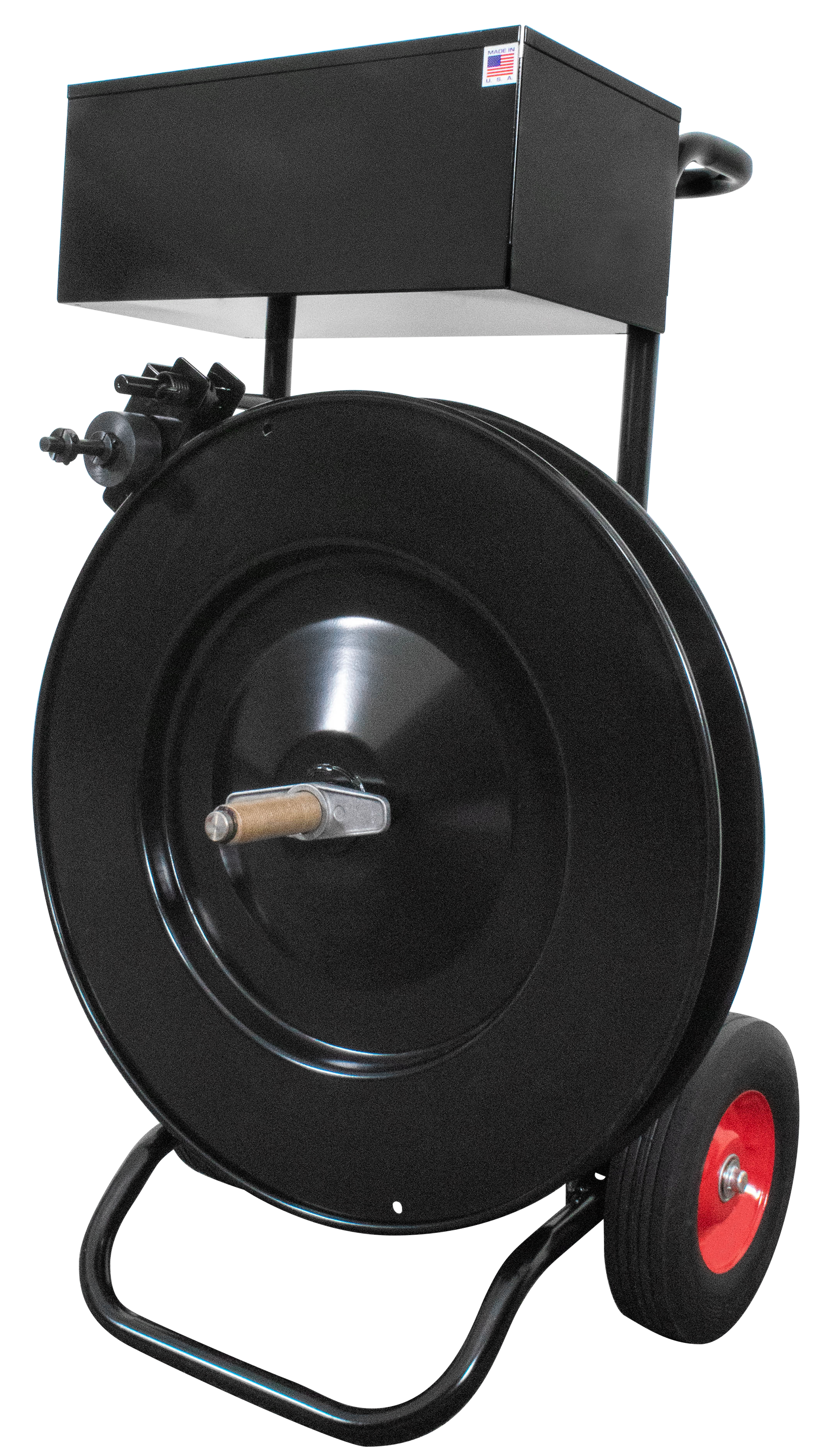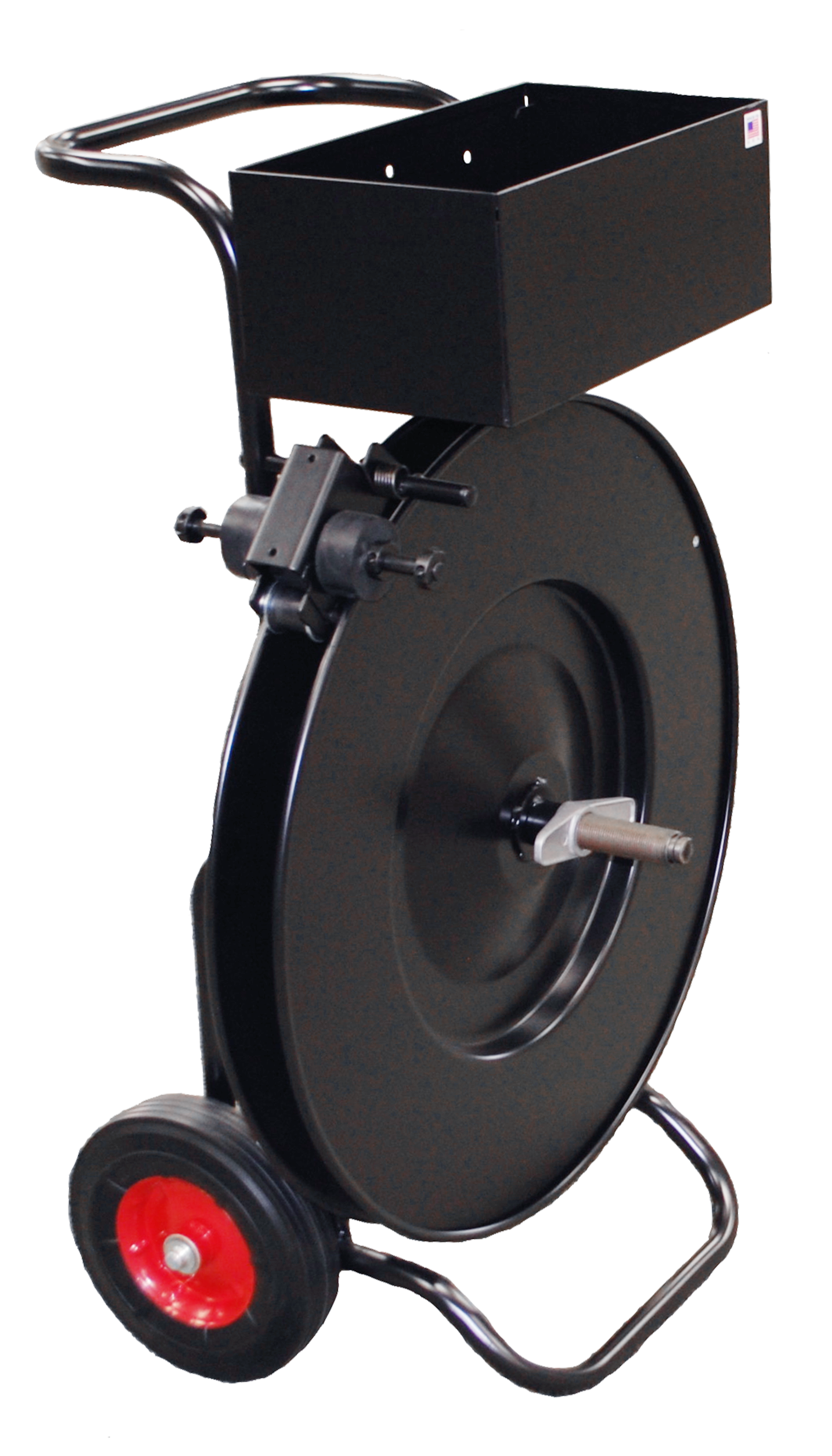 This premium oscillated-wound dispenser has a classic industrial design. Strap troller allows strap to dispense with ease and acts as a brake mechanism when desired length is reached. 10” rubber tires to easily maneuver around your warehouse . 16” core ID. 3” – 6” face width. Made in the USA.