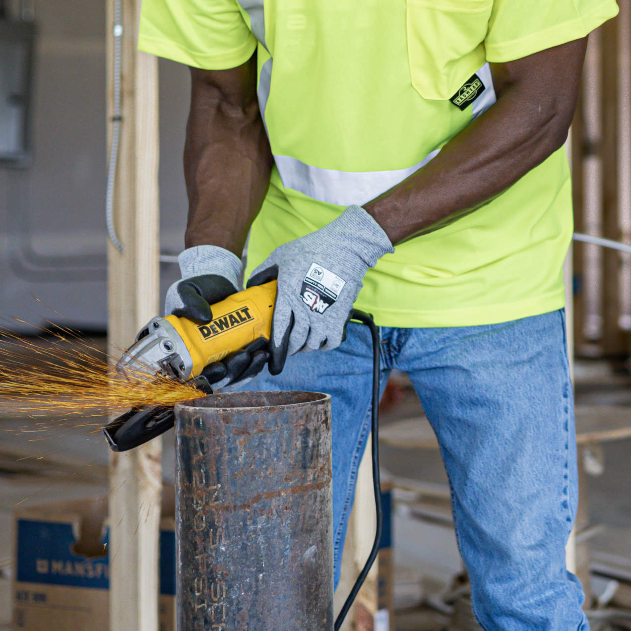 The Radians RWG566 Axis™ Touchscreen level A5 cut protection dipped glove improves productivity and keeps the user protected by allowing use of touch screen devices without removing the gloves. It also provides excellent protection against abrasion, cuts, tear and puncture. The seamless design of the 18 gauge, HPPE shell with Stainless Steel provides excellent cut protection. The black PU palm coating provides excellent protection from abrasion in hazardous applications.