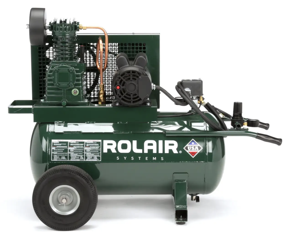 Model 5520K17A is the step up from our classic 1.5 HP twin-tank wheelbarrow design. Featuring a single 20 gallon tank assembly, the 5520K17A sustains 7.3 CFM @ 90 PSI longer than the traditional 9 gallon twin tank design. The low-RPM pump and motor combine for quiet operation and minimal amp draw.