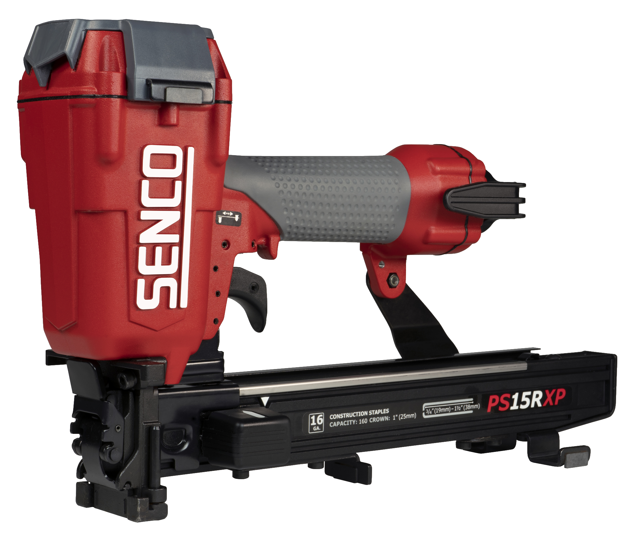 Constructed of durable, high strength components, the PS15RXP has been developed for extreme performance and longevity. The drive track design and quick clear latch improve the overall holding power of the fasteners, increasing drive performance, and virtually eliminating fastener jams and misfires. This roofing stapler is best suited for asphalt and fiberglass shingles, roofing felt, wire lathing and foam insulation board applications, driving 16-gauge 1” crown staples up to 1-½” in length.