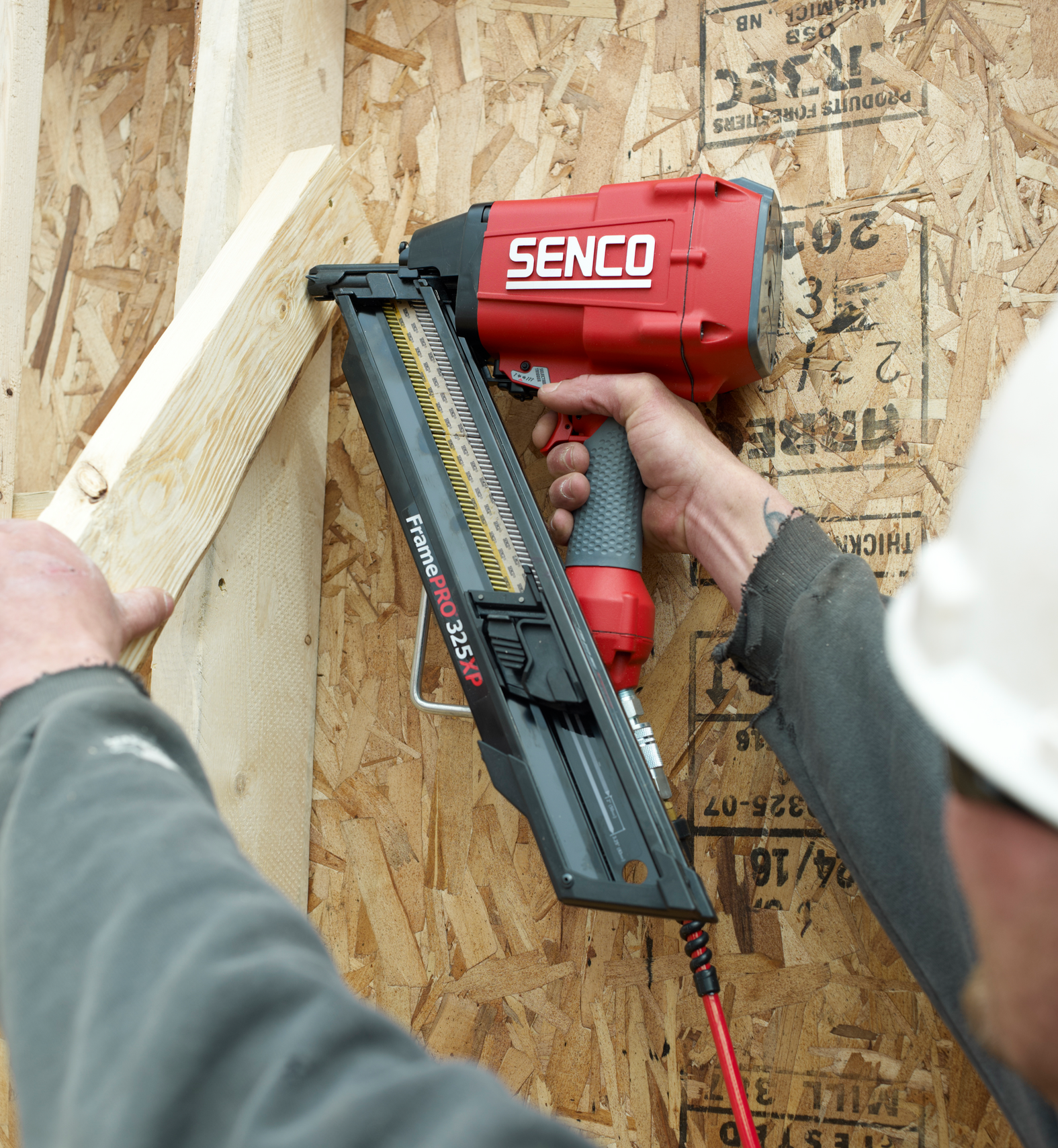 This well-balanced lightweight framing nailer packs plenty of power and won’t leave you fatigued at the end of the day. The FramePro®325XP drives ring, screw, and smooth-shank 30°- 34° paper taped strip nails up to 3-1/4” in length into dense engineered lumber commonly used in framing jobs. SENCO’s patented TrueDrive™ magazine reduces jams and misfeeds, therefore boosting efficiency. The internal design of the FramePro®325XP uses less air, causing less wear and tear on the compressor.