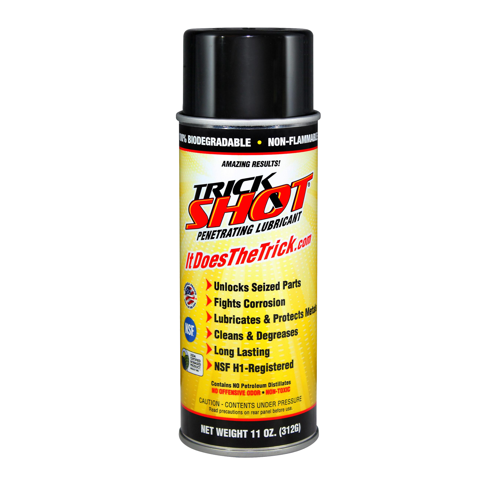 Trick Shot® is a high-performing penetrating lubricant that lubricates, prevents rust, unlocks seized parts, fights corrosion, cleans and protects. It is also a “green” product. It is non-flammable, non-toxic, 100% biodegradable and safe for the environment.