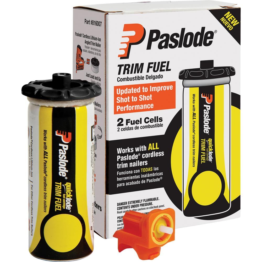 Paslode Universal Trim Fuel is the fuel your finish nailer needs for just pennies per shot. Paslode trim fuel cells give you the power to drive up to 1,200 nails. Each Paslode short yellow trim fuel 2-pack comes with two types of adapter heads to meet the needs of ALL Paslode finish nailers. And, the fuel works with most Hitachi and Bostitch Trim nailers.